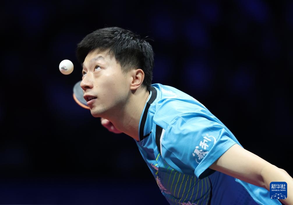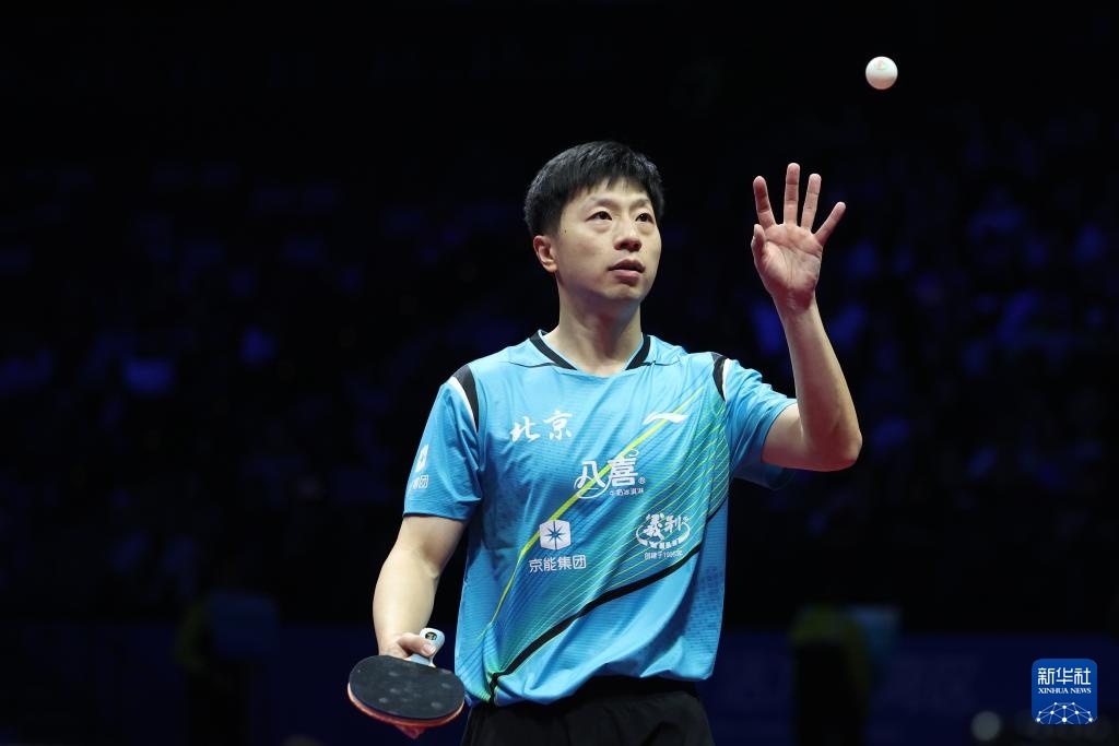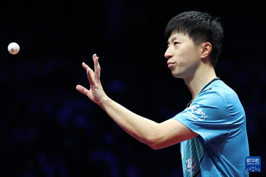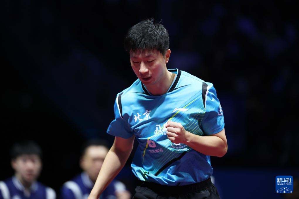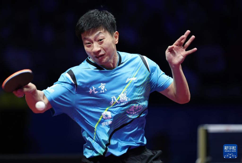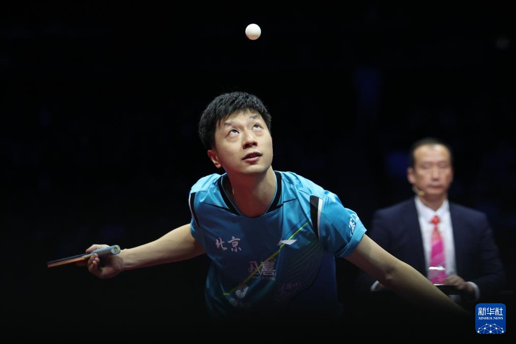 11月20日,北京队选手马龙在男单比赛中回球。他对阵上海队选手周恺。