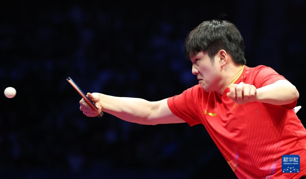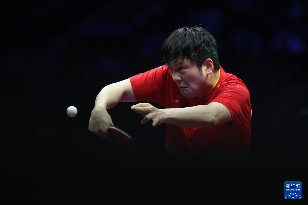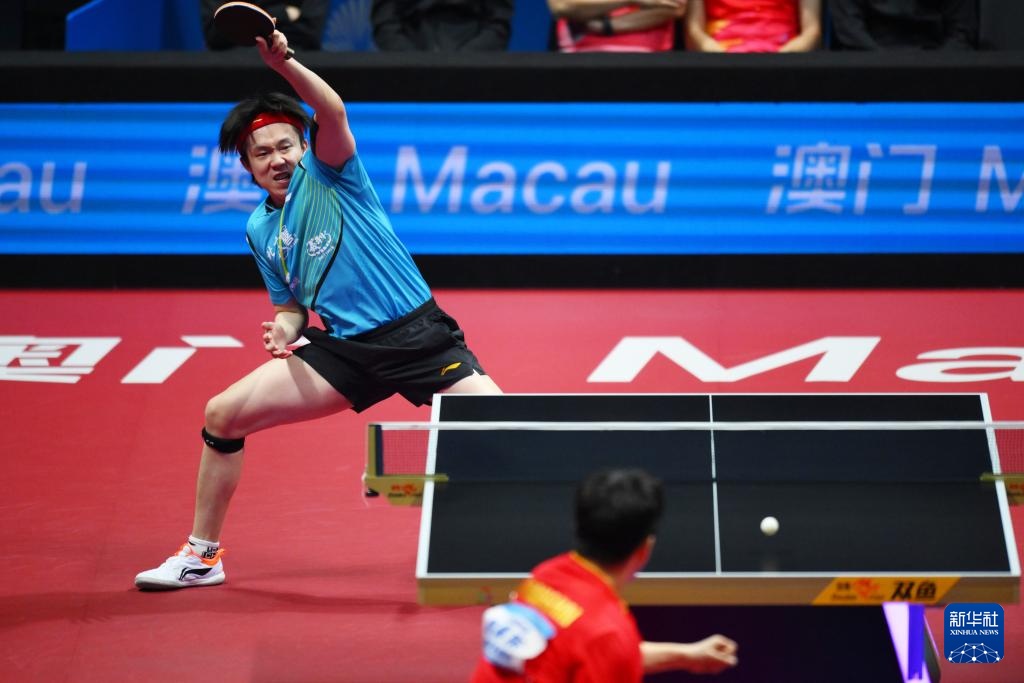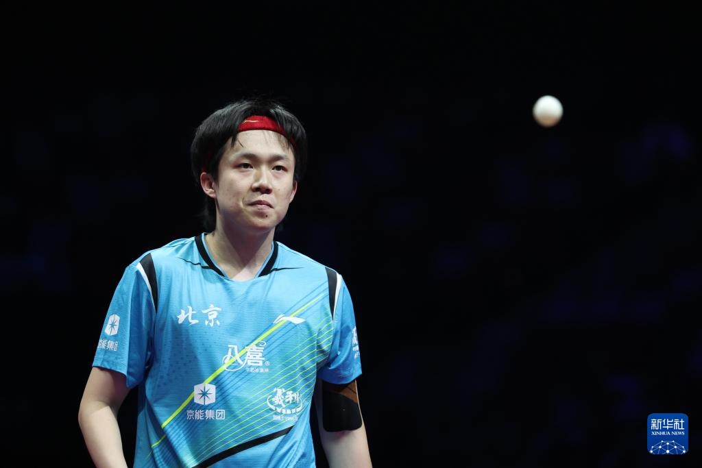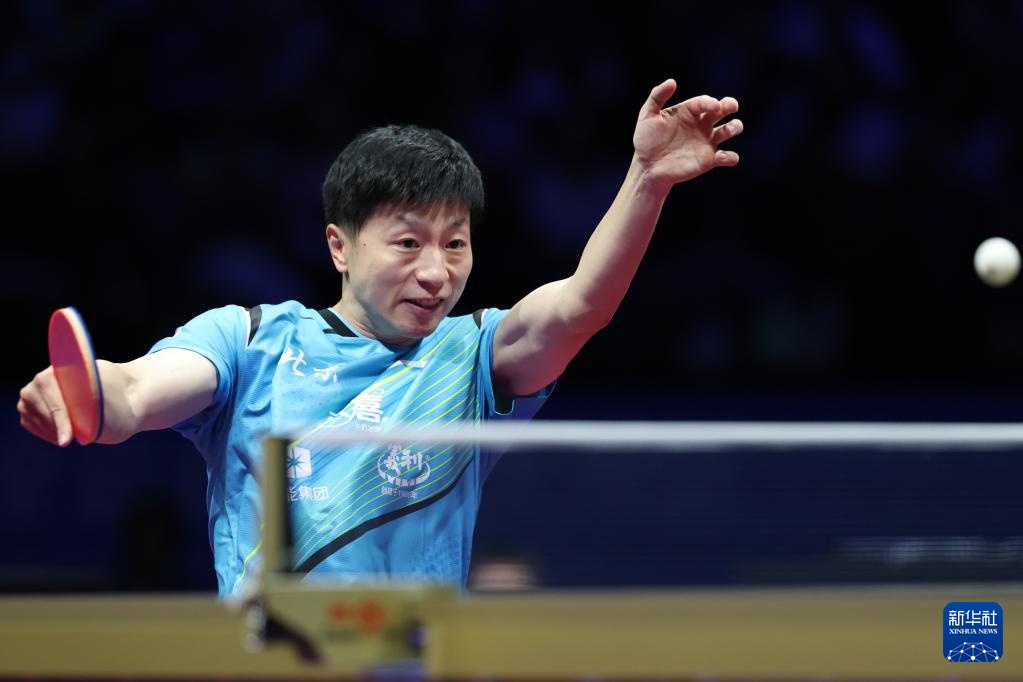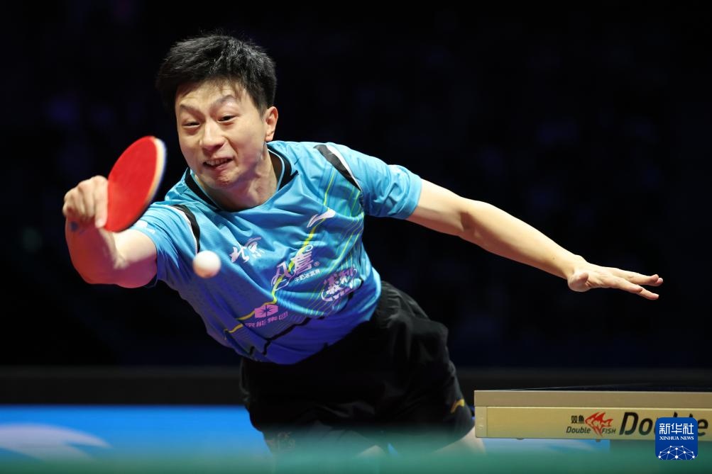11月20日,北京队选手马龙在男单比赛中回球。他对阵上海队选手周恺。