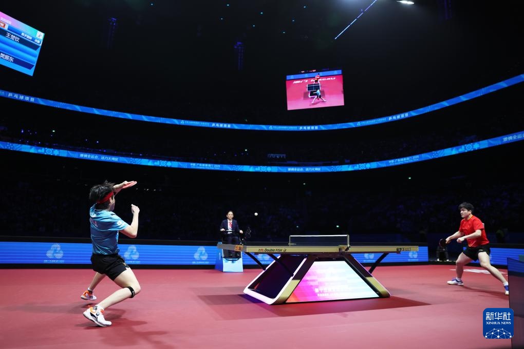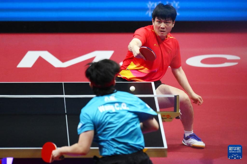 11月20日,北京队选手王楚钦(左)和上海队选手樊振东(右)在男单比赛中。