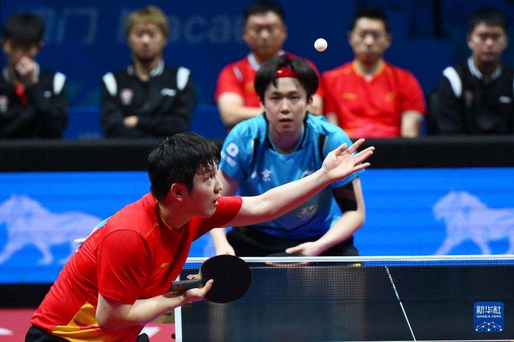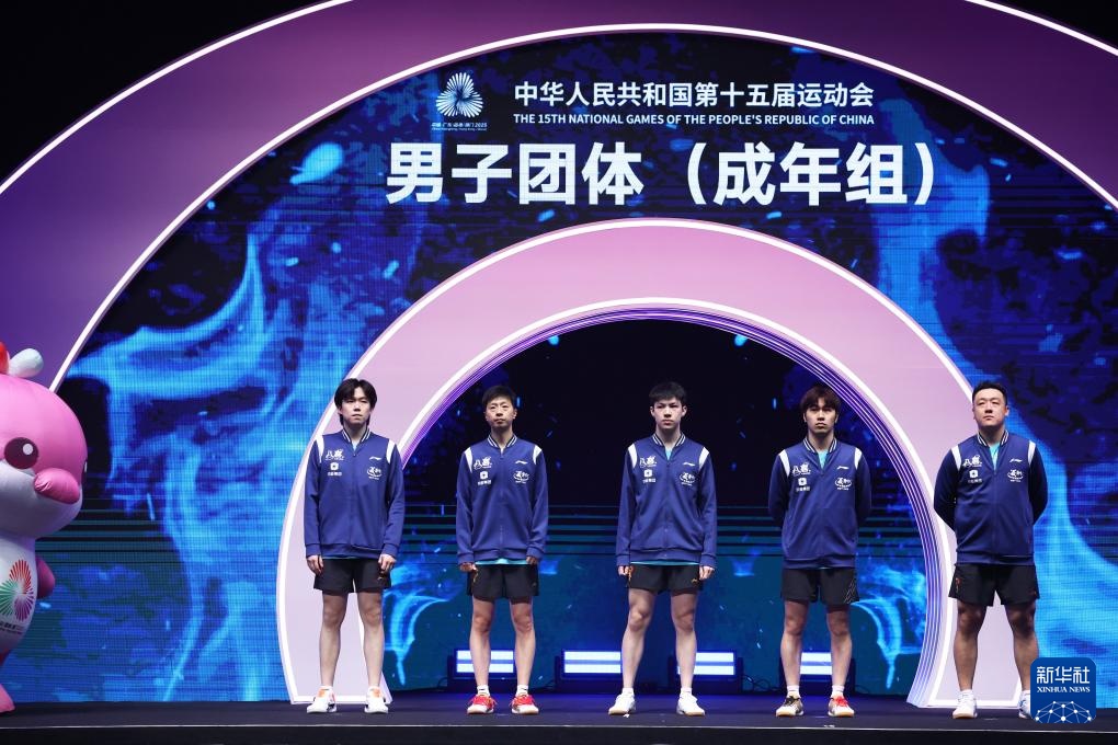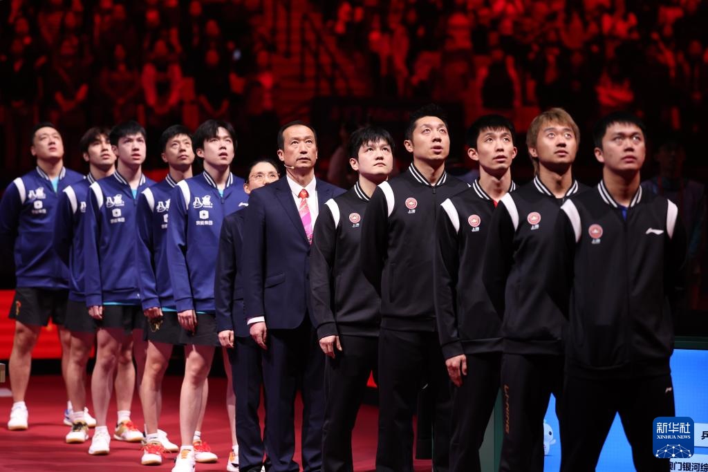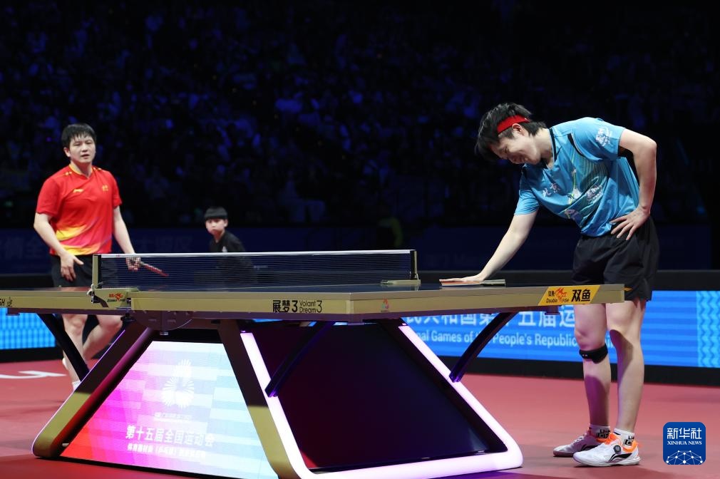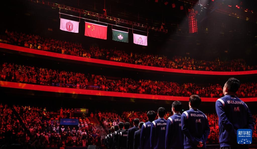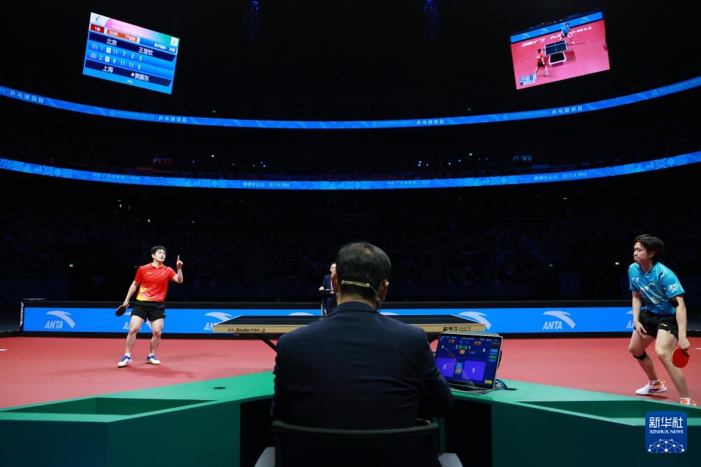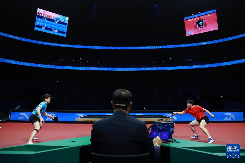 当日,在澳门举行的第十五届全国运动会乒乓球男子团体金牌赛中,北京队对阵上海队。