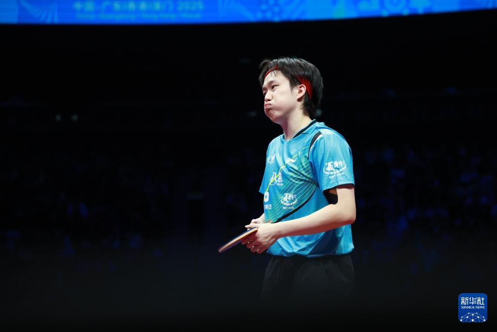 11月20日,北京队选手王楚钦在男单比赛中。他对阵上海队选手樊振东。