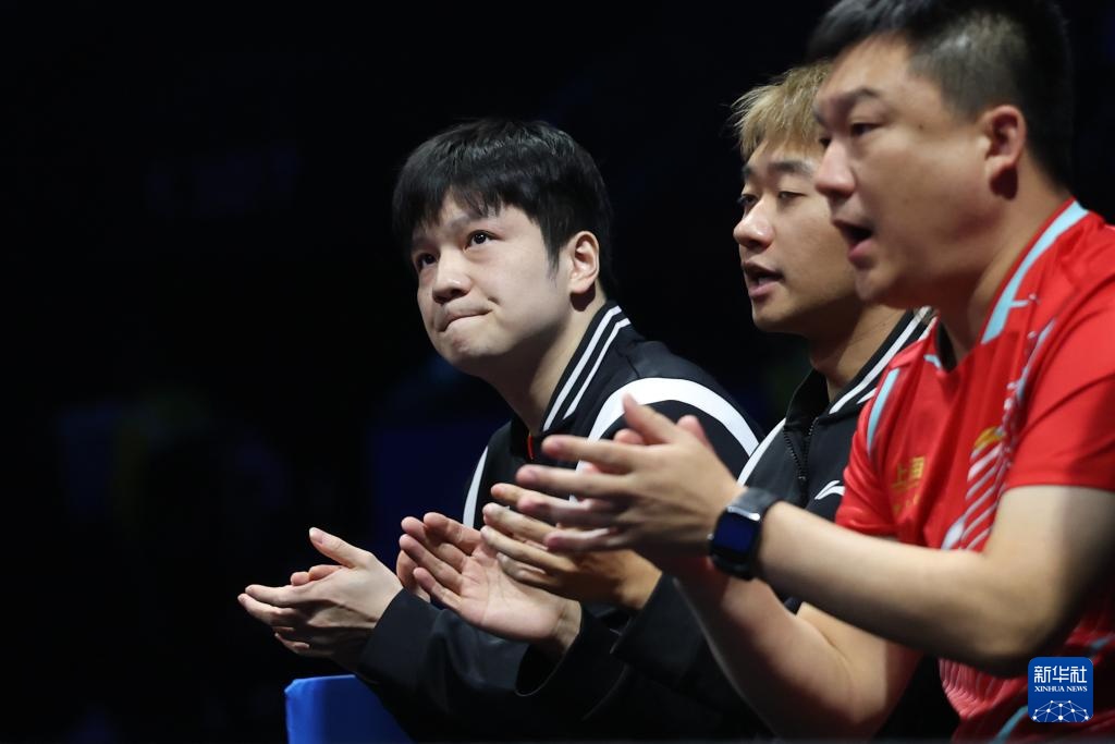 11月20日,上海队选手樊振东(左一)在场边观赛。