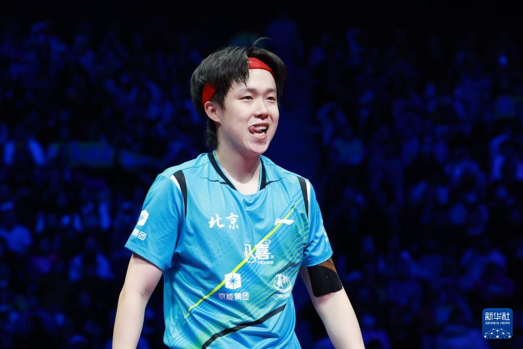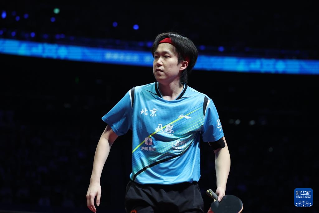 11月20日,北京队选手王楚钦在男单比赛中回球。他对阵上海队选手樊振东。