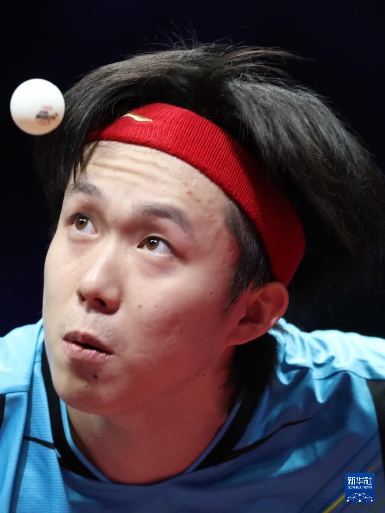 11月20日,上海队选手周恺在男单比赛中回球。他对阵北京队选手马龙。