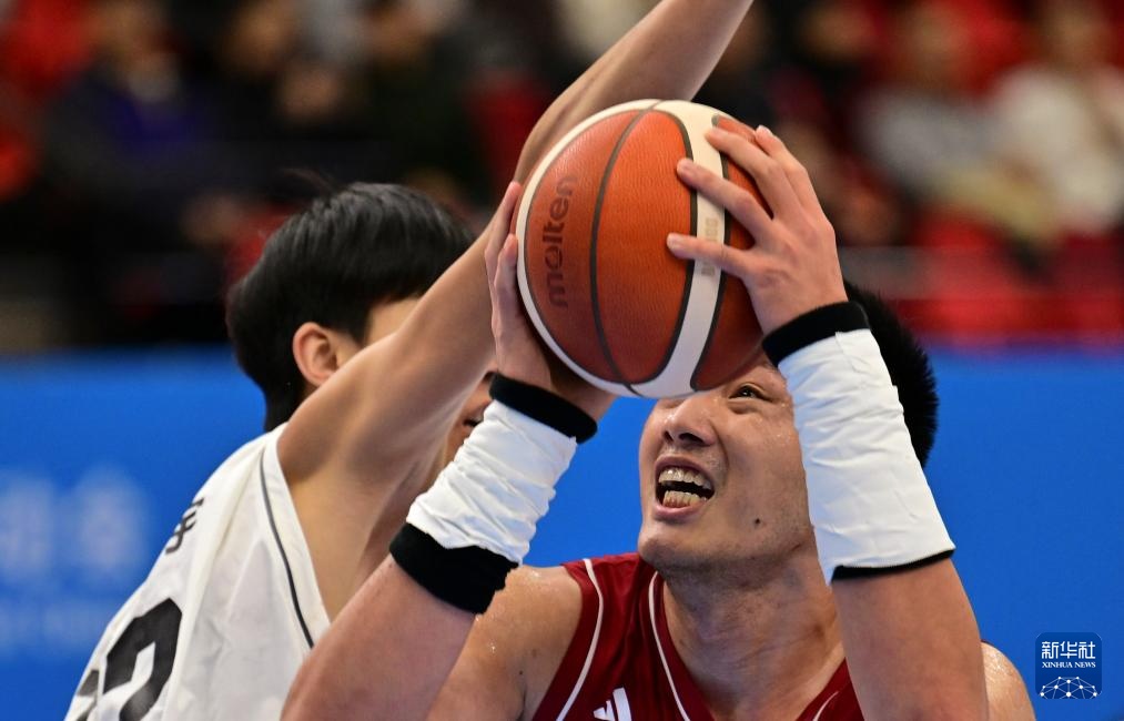 11月20日,北京队球员偰李永炜(中)在比赛中上篮。