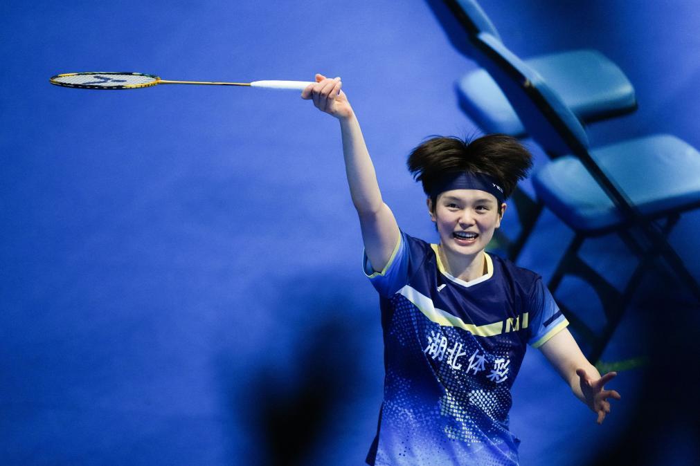 男单与女单都迎来了新科冠军。福建队翁泓阳以21:10、21:18战胜湖北队朱轩辰,赢得了自己首枚全运会男单金牌。女单决赛经历了一场97分钟的鏖战,湖北队王祉怡在先失一局的情况下连扳两局,以10:21、21:18、21:16战胜浙江队陈雨菲,终结对手两连冠的同时,为湖北队摘得本届全运会首枚羽毛球金牌。