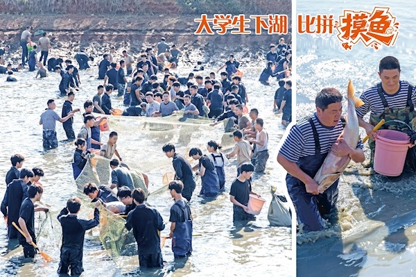 11月20日下午,在武昌职业学院第四届捕鱼节上,何邓江等600名学生被分成12支队伍,比拼“摸鱼技术”,现场一片欢腾。活动开始后,参赛学生们身着防水服,手持渔网,纷纷从岸边冲入池塘,参赛选手各显神通,用双手在淤泥和水草中搜寻肥鱼。