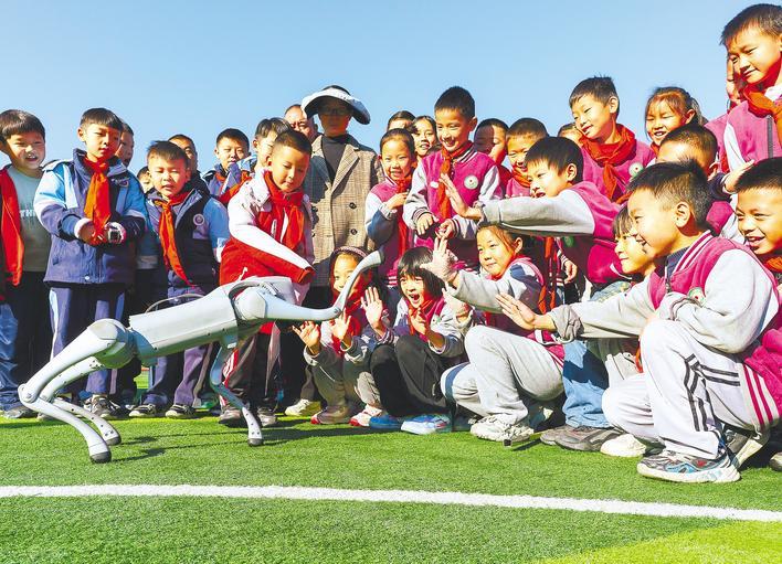 11月19日,秭归县两河口镇两河口小学举办首届校园科技节活动。该县科技馆向偏远山区小学学生展示机器人、机器狗等科学装置,指导学生利用所学科学知识进行探索,激发学生对科技的探索热情,感受科技的趣味性。(视界网 周仕伟 摄)