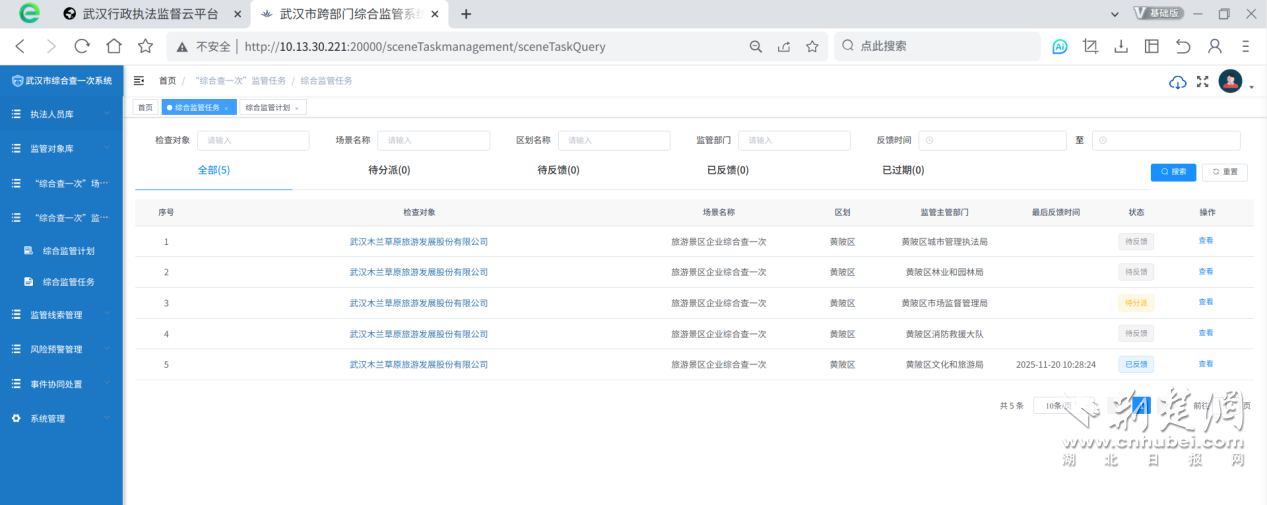 行动前,黄陂区司法局特邀武汉市司法局行政执法监督处负责人全程指导,系统梳理检查内容、法律依据与标准,量身定制“旅游景区综合查一次事项清单”,为检查提供了清晰指引。随后,区文旅局通过云平台统一发起任务,各相关部门同步响应,执法人员被精准派发、协同行动。