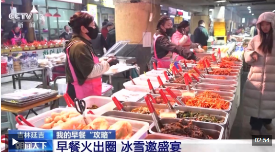 不忙的时候,市场里的一些商家也会举着手机,依托网络平台进行直播,实现线上线下一体化销售。泡菜商家还能提供真空包装服务,游客买完就能直接快递回家。早餐经济已经成为延吉文旅融合的生动缩影。