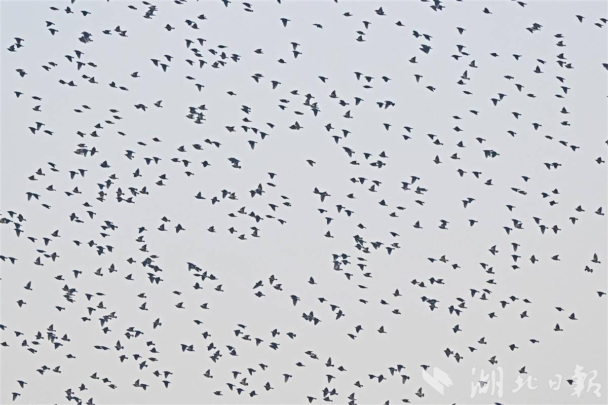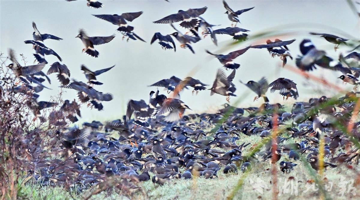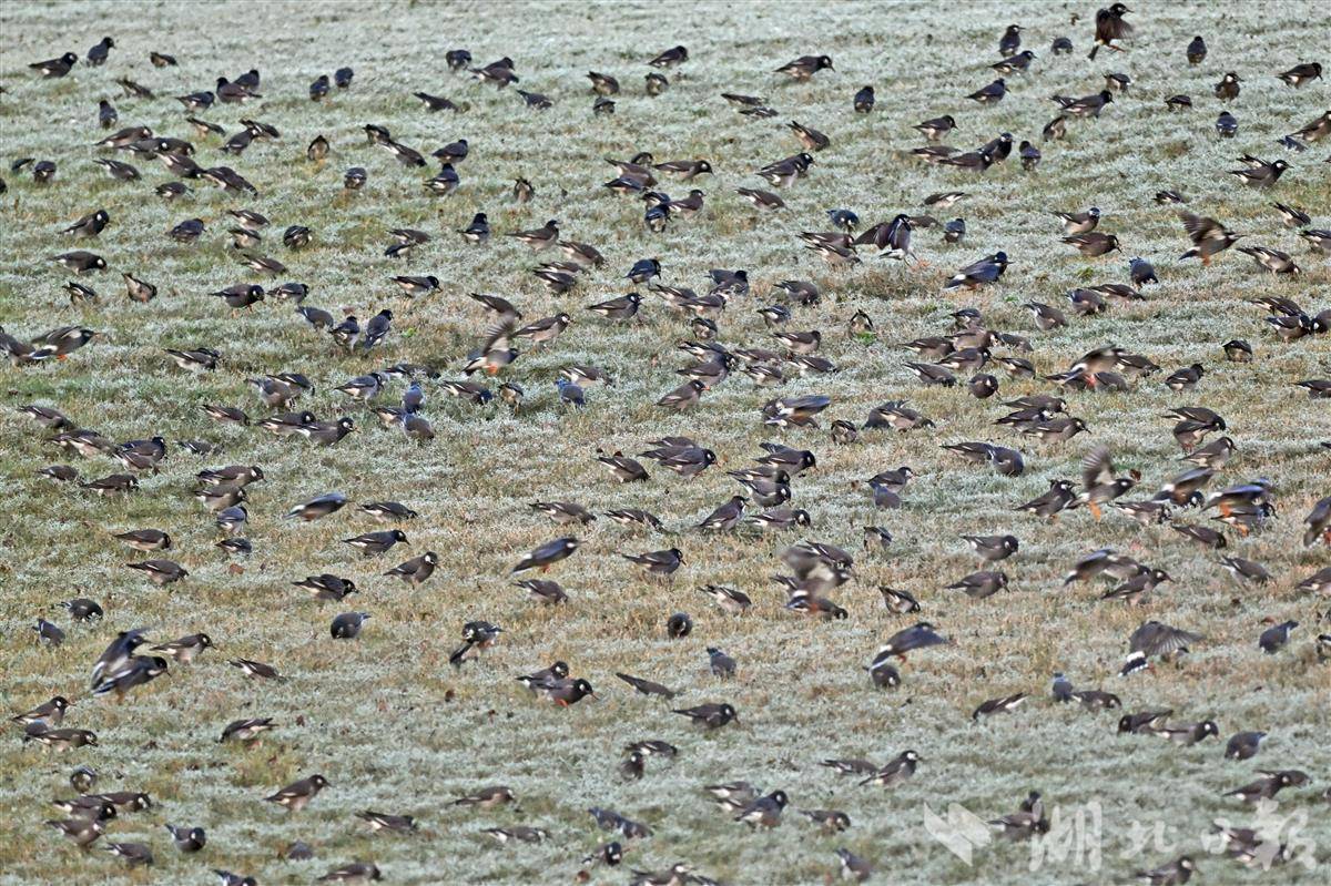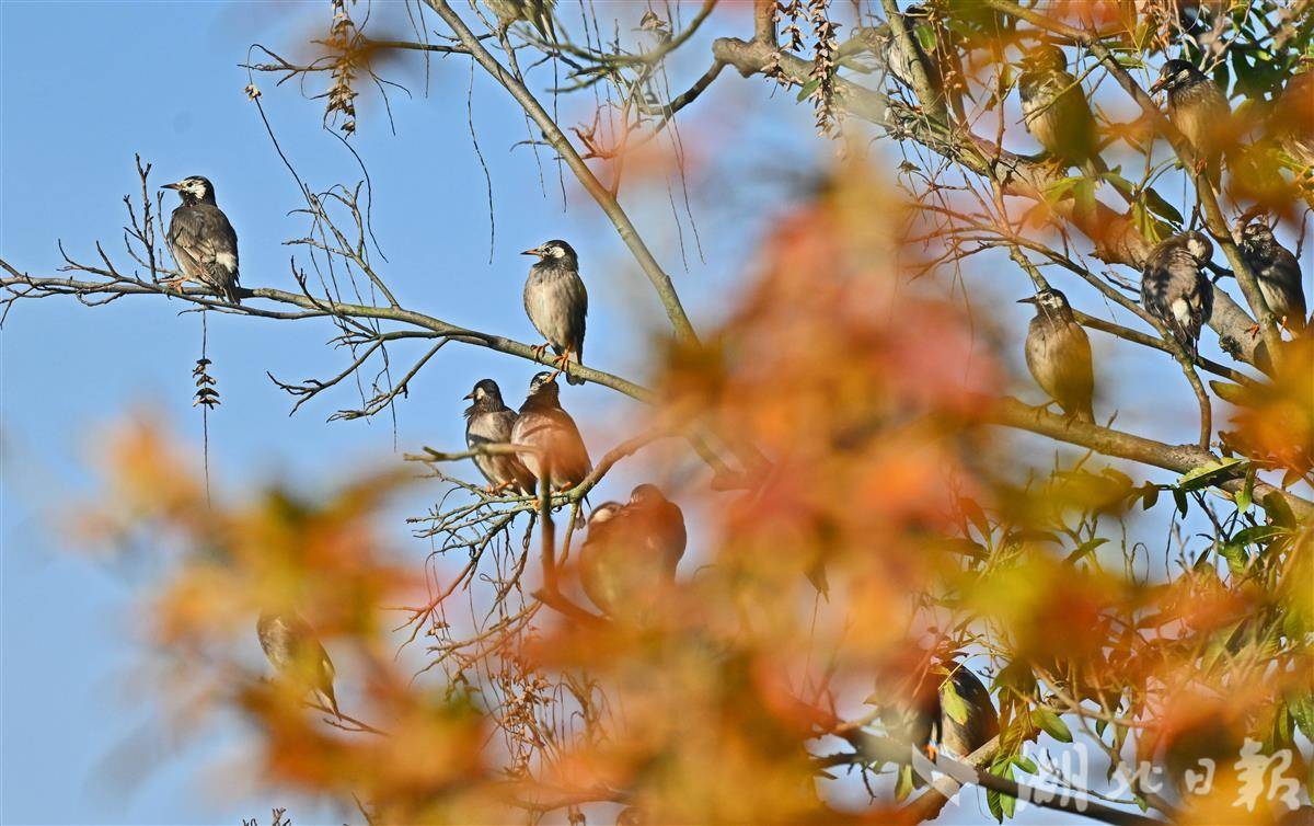 11月21日清晨,宜昌卷桥河湿地热闹非凡,一群群丝光椋鸟在此自由飞翔、嬉戏,树林间、草地上、溪水边随处可见它们灵动的身影。近年来,宜昌生态环境持续改善,湿地生态功能稳步提升,为丝光椋鸟等鸟类提供了优质栖息环境,鸟类数量逐年增多,成为当地生态保护成效的鲜活见证。(湖北日报全媒记者 刘曙松 摄)