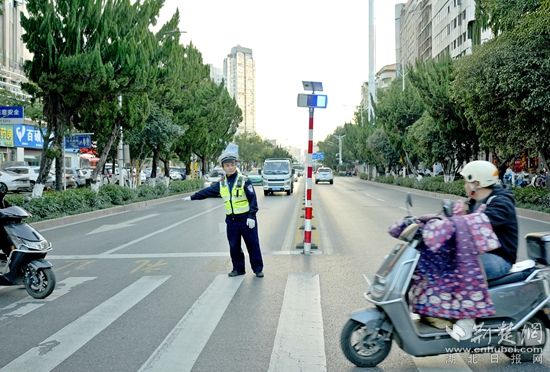 “您好,稍等一下,让孩子们先过。”“谢谢您,祝您一路平安!”……11月21日6时,在鄂州市鄂城区杨湾街口,当第一缕阳光刚刚穿透薄雾,李超已经站在了执勤岗位上,他通过熟练的指挥手势,为过往的行人和车辆开辟出一条条安全通道。