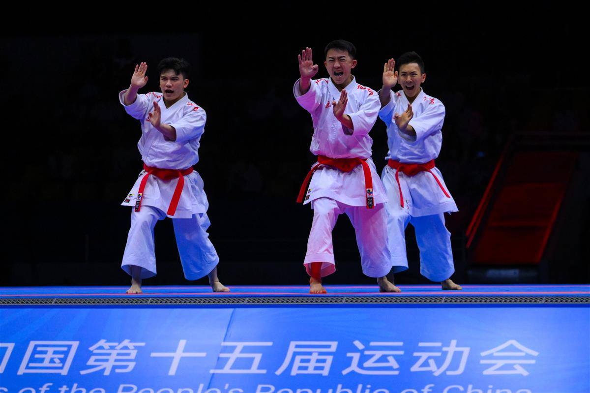 冠军简介:郭建恒,1992年出生,中国澳门第一位全运会冠军。2005年接触空手道,2007年入选澳门集训队,2013年东亚运动会男子个人型冠军,2021年十四运会空手道男子个人型项目夺澳门首枚全运奖牌,2025年十五运会空手道男子业余组团体型项目夺澳门首枚全运金牌。