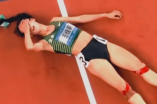王佳莉拼尽最后力气完成了比赛