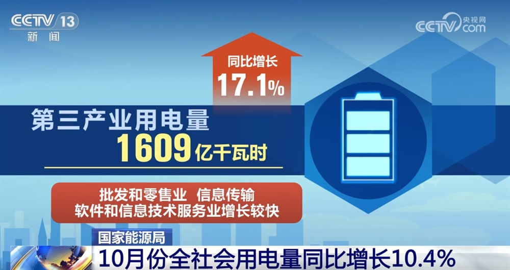 用电量数据也被称为反映经济变化的“晴雨表”之一,从刚刚国家能源局发布的数据中可以看到,10月份用电量增速达到了两位数,创下年内新高,10.4%的增速背后可以看出经济社会什么变化?来看专家的解读。