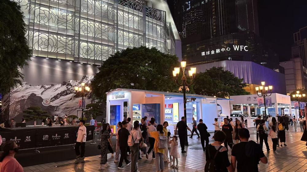 重庆解放碑商圈内,消费者在“国际优品展”选购。新华社记者 李晓婷 摄