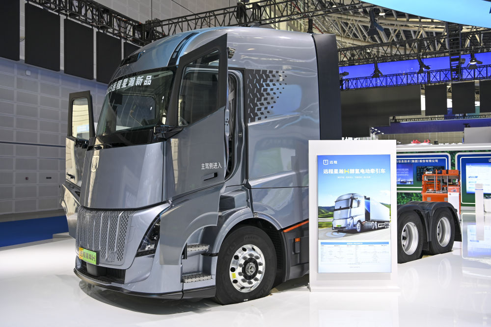 这是在2025年山西(太原)能源产业博览会上展示的一款醇氢电动牵引车(9月27日摄)。新华社记者 杨晨光 摄