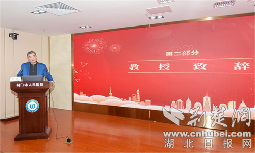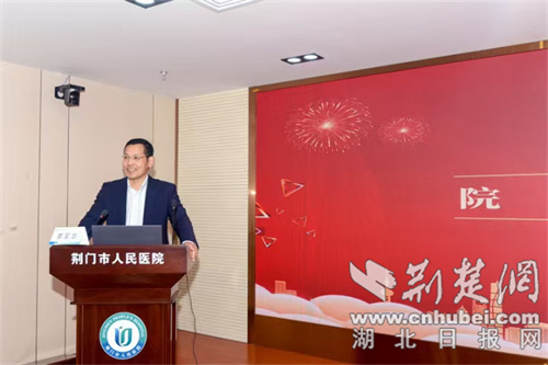 仪式上,荆门市人民医院院长李军华发表致辞,对尹涛教授的远道而来表示热烈欢迎和诚挚感谢,向为基地申报成功辛勤付出的肝胆胰外科团队致以祝贺与敬意。他表示,肝癌是危害我国人民健康的重大疾病,转化治疗作为肝癌治疗领域的重要突破,为中晚期肝癌患者带来了新希望。此次成功挂牌,既是对医院肝癌诊疗工作的肯定,更是一份沉甸甸的责任与鞭策。