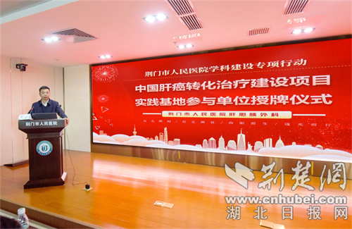 荆楚网(湖北日报网)讯(通讯员 杨庆华)11月21日上午,中国肝癌转化治疗建设项目实践基地参与单位授牌仪式在荆门市人民医院隆重举行。省肿瘤医院尹涛教授应邀莅临指导,院领导、相关临床科室医护人员共同见证这一重要时刻。