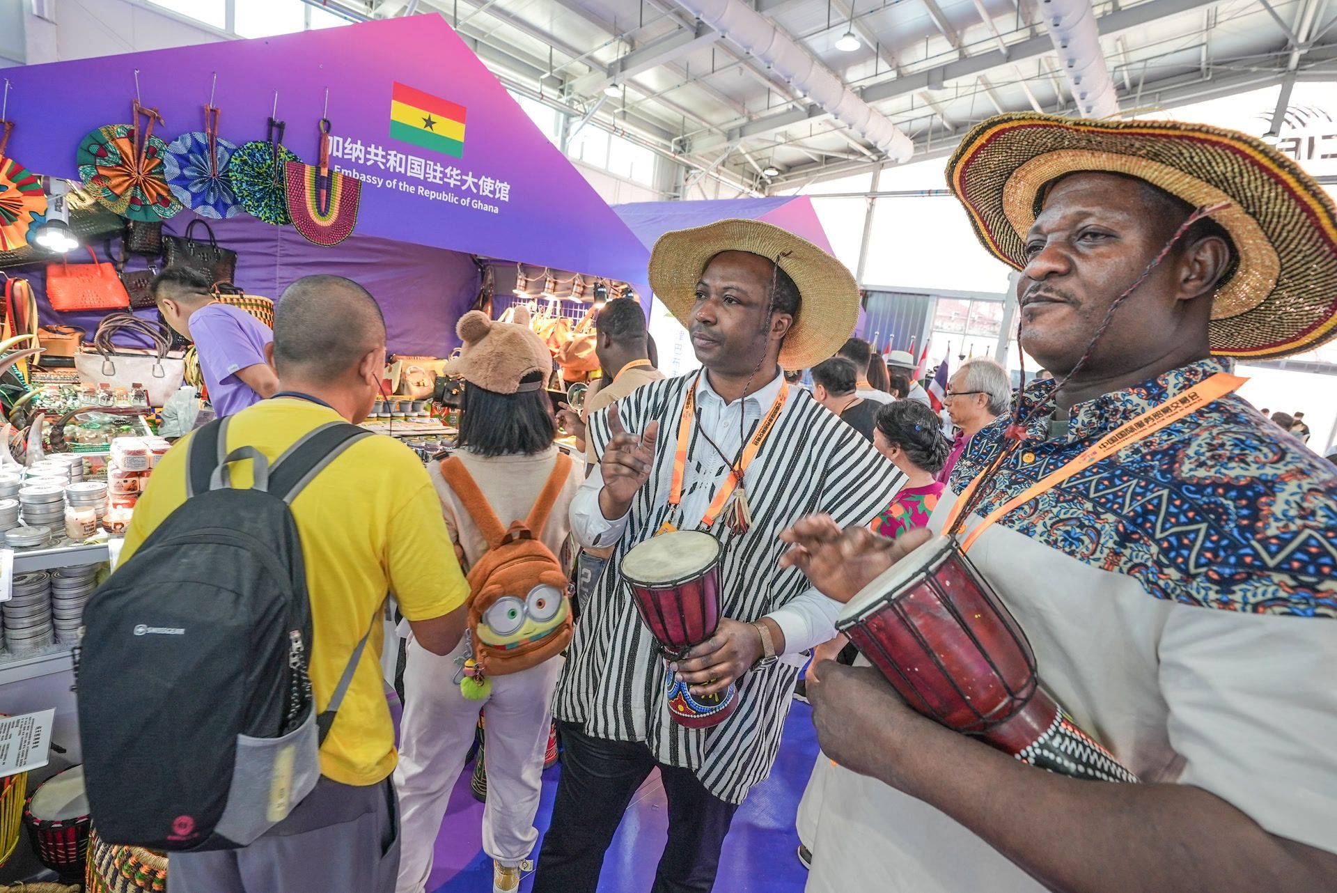 在服贸会首钢园展区,外籍展商在现场表演,展示本国文化。武亦彬摄