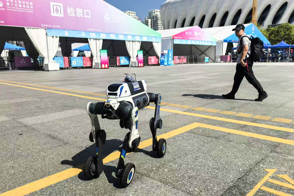 11月15日,深圳警方在场馆附近使用“电子狼”警用巡逻机器人。