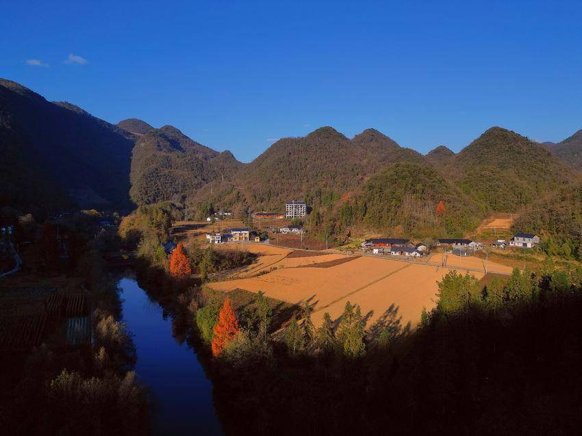 湖北日报客户端讯(通讯员向冰舟、杜雪平)11月21日的冬阳格外温暖,澄澈的光辉铺洒在董家河的每一个角落,驱散了冬日的清寒。笔者踩着松软的田埂走进鹤峰县燕子镇董家村,竟撞见一整个未褪的秋光,仿佛时光在这里按下了暂停键。
