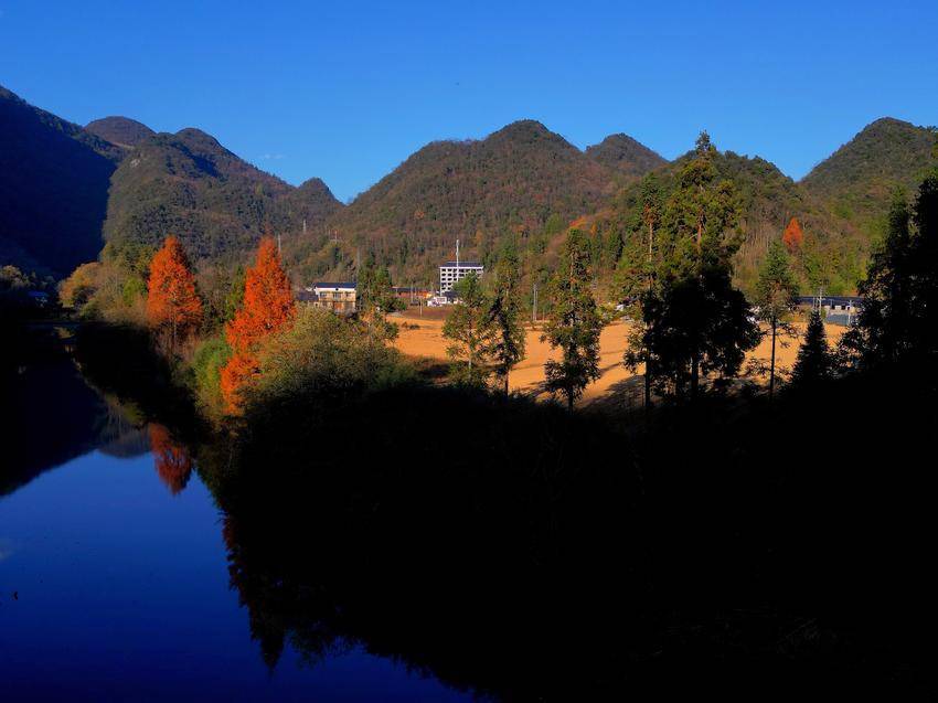 具有独特坡立谷地貌的董家河之秋,从不与人匆匆告别。它要悄悄占用冬季的三分之一,在白雪未临的日子里,让红树黄叶与绿水青山长相厮守。