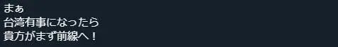 帖文大意:呵呵,若台湾有事,你先冲去前线!