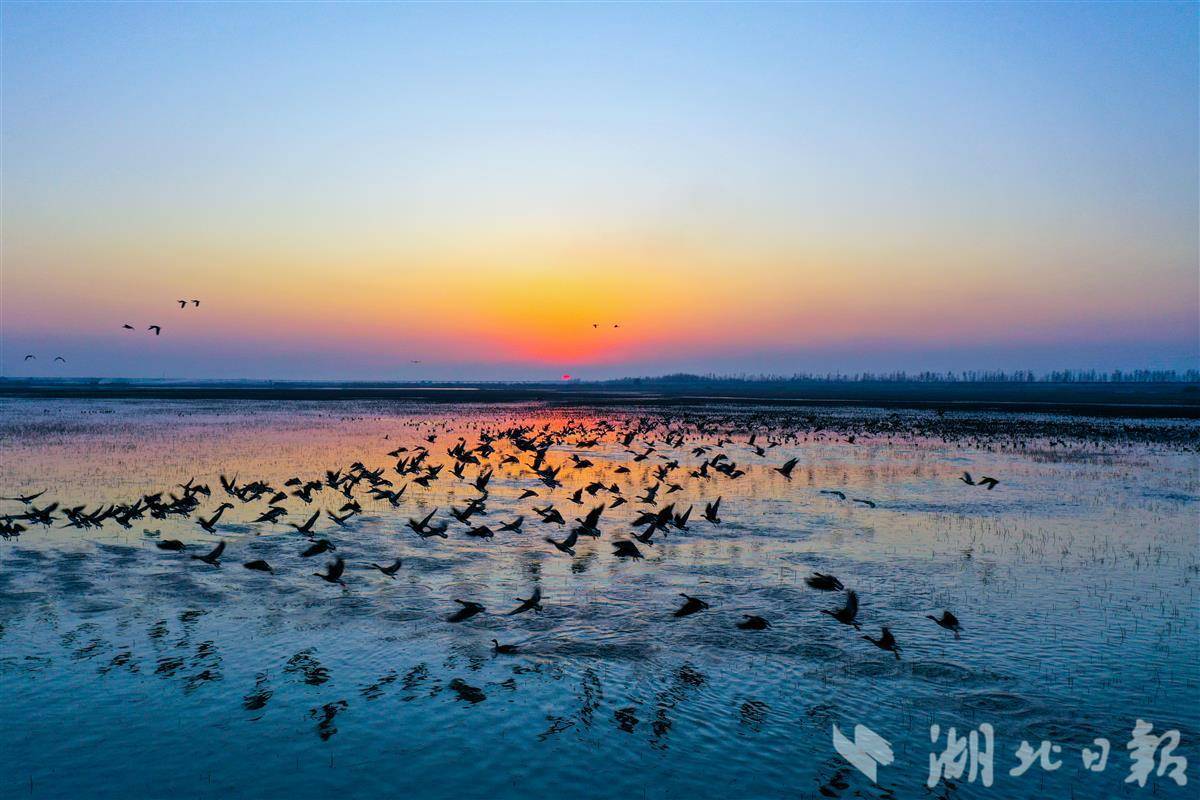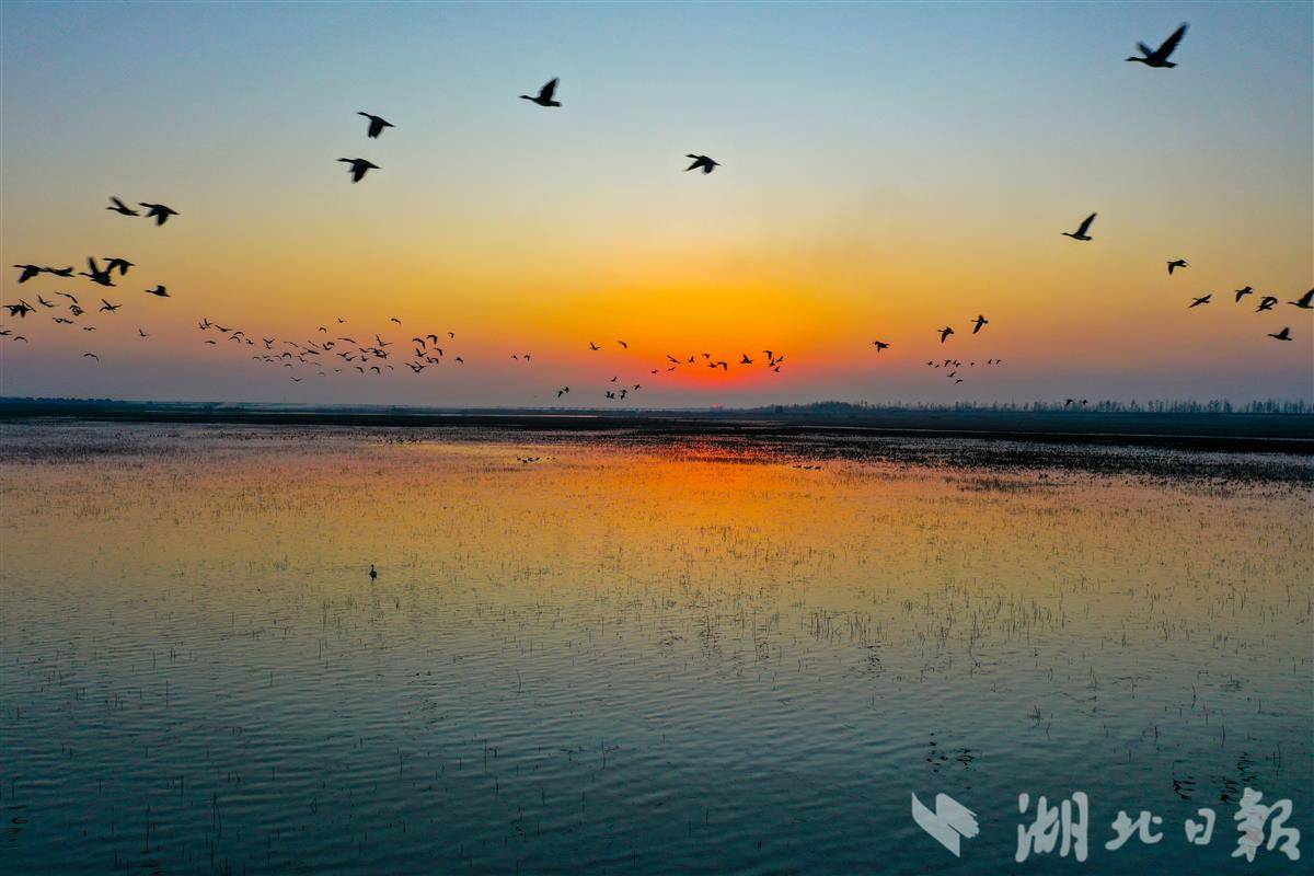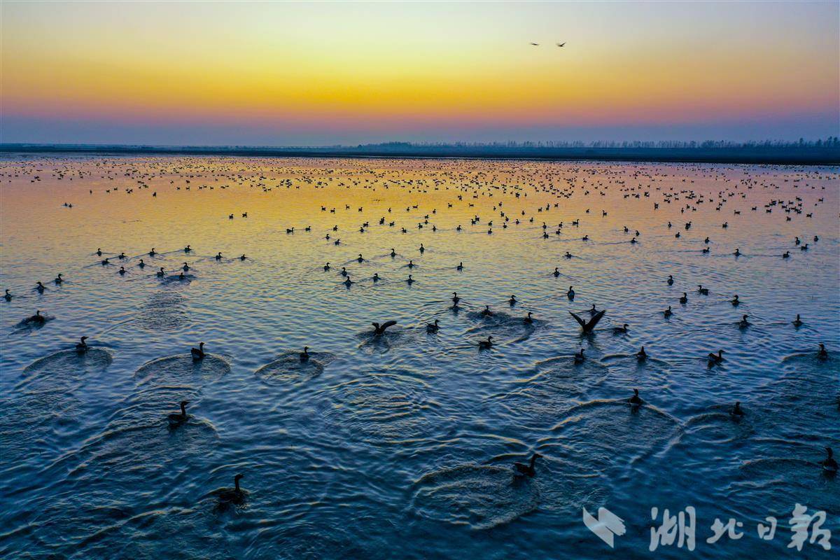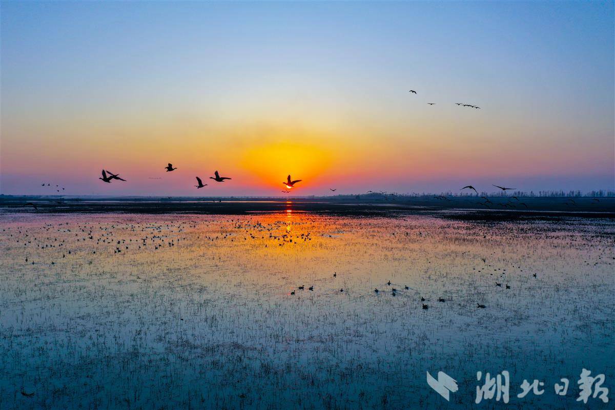 11月22日,仙桃市沙湖国家湿地公园芦花漫卷、鸟声阵阵,三五成群的候鸟嬉戏觅食,野趣横生。