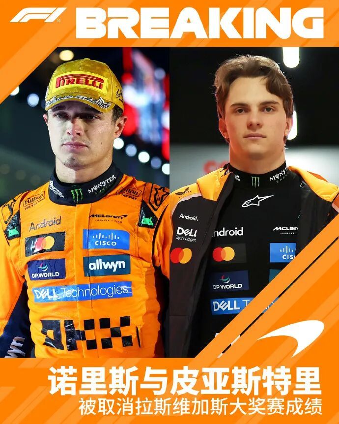 在此前结束的F1拉斯维加斯大奖赛中,诺里斯杆位起步昏厥,最终获得第2,皮亚斯特里获得第4。