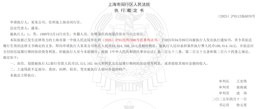 根据上海市闵行区人民法院发布的“(2025)沪0112执6078号”执行裁定书显示,至2025年4月11日,Scout未能履行赔偿。根据我国《中华人民共和国民事诉讼法》相关条令规定,法院裁定冻结、划拨Scout银行存款人民币约3352万元和利息及迟延履行期间的加倍债务利息,或者提取其相应金额的收入。此外上述钱款不足部分,查封、扣押、拍卖、变卖被执行人相应价值的财产。