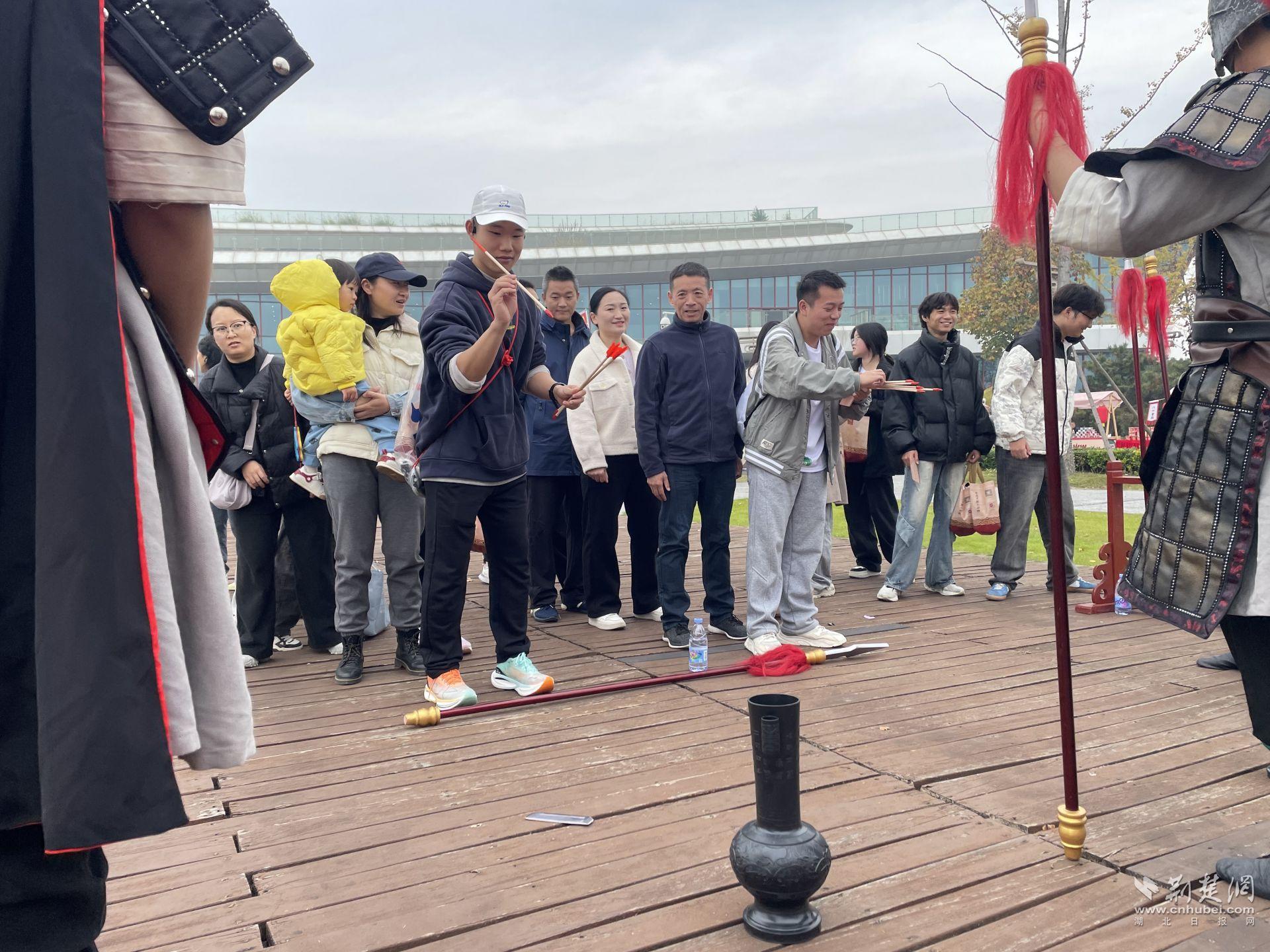 比赛同时,在荆州园博园内设置了“做一天楚人”沉浸式主题游园活动,跑者和游客免门票入园参加“楚王召集令”,体验“招勇士 · 力能扛鼎”“招宫女 · 楚腰善舞”“招军师 · 博通楚典”等代入式任务,即可获得精美文创礼品。