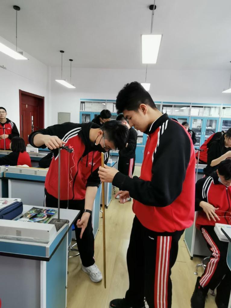 曲格平(左)在高中与同学进行物理实验。受访者供图