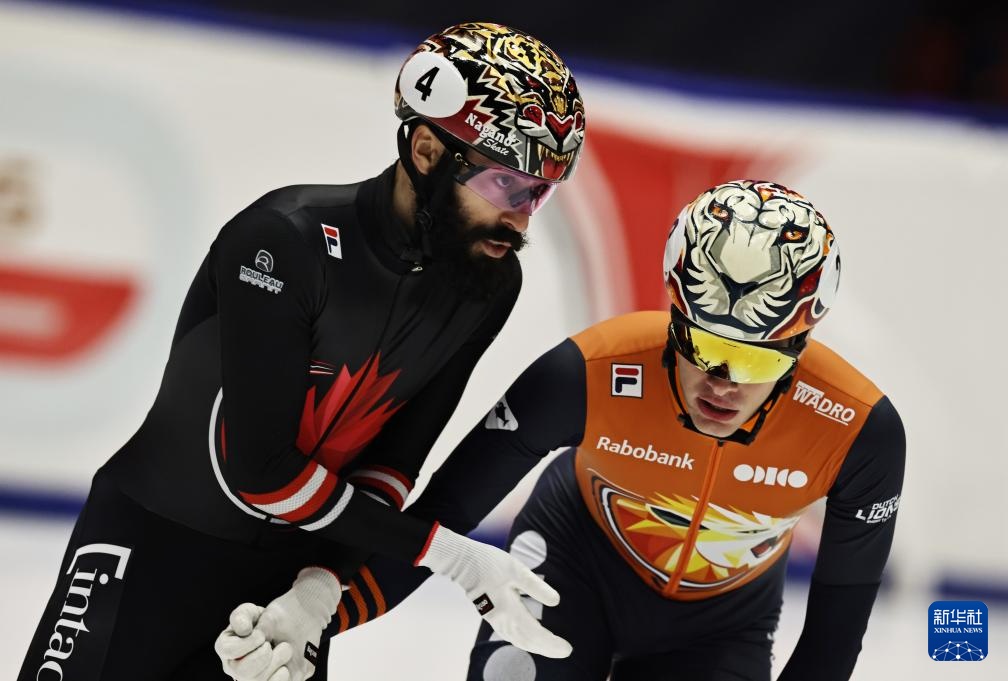 11月23日,荷兰选手延斯·范特·沃特(右)在比赛后与加拿大选手杜波依斯握手致意。最终,延斯·范特·沃特夺得冠军,杜波依斯获得季军。