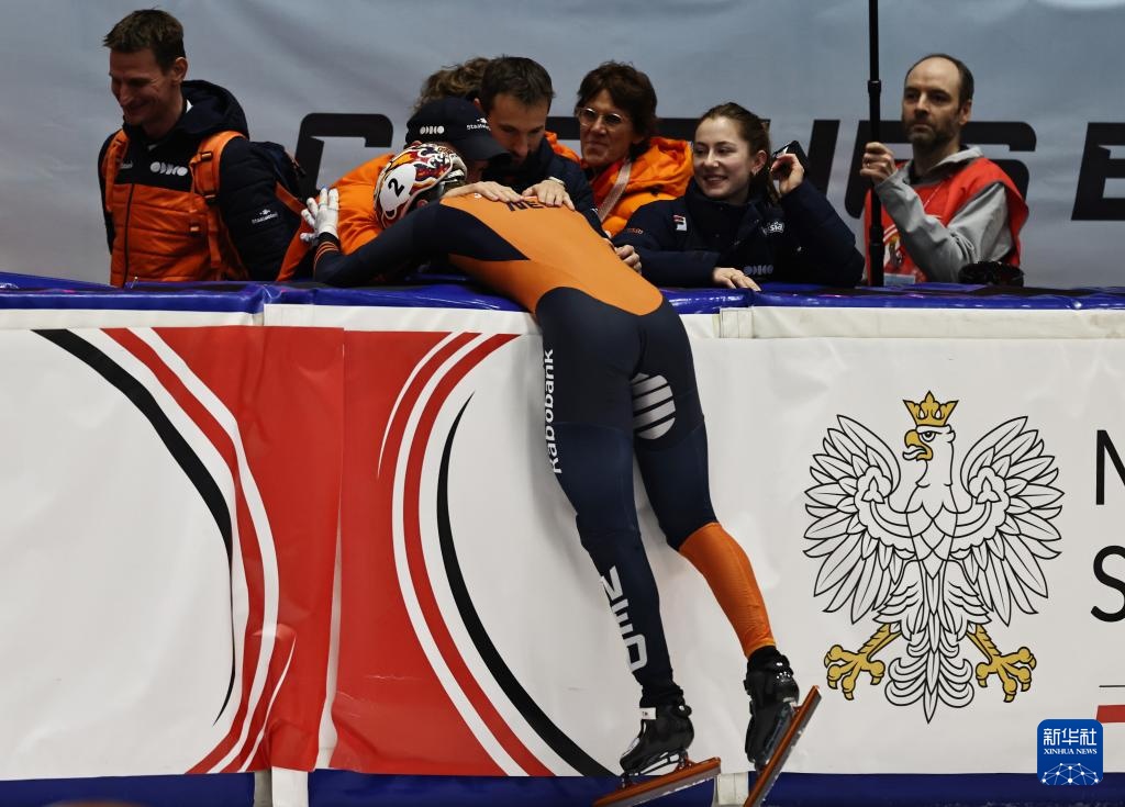 11月23日,荷兰选手延斯·范特·沃特(前)夺冠后庆祝。