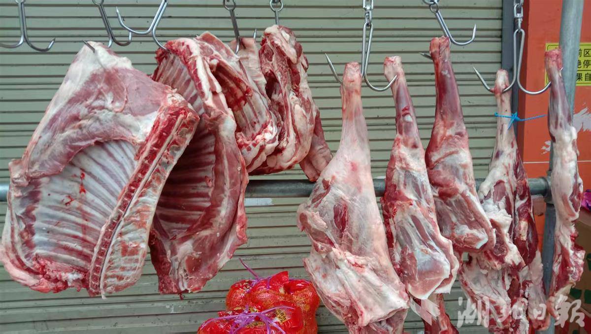 在汉阳王家湾附近一家生鲜集贸市场里,新鲜羊腿、羊排一个价,每斤28.5元。如果全羊一起买还有优惠空间。一位买菜的老师傅说,价格比往年便宜了不少,每周吃羊肉补身体也承担得起。