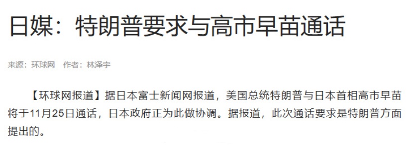 据环球网援引日本富士新闻网报道,美国总统特朗普与日本首相高市早苗将于11月25日通话,日本政府正为此做协调。