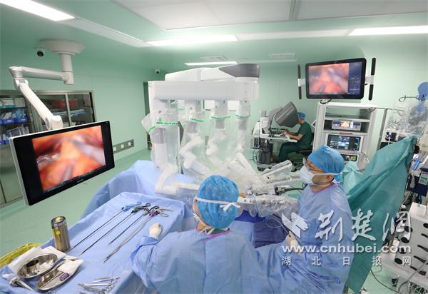 荆楚网(湖北日报网)讯(记者 林琳 通讯员李蓓 刘姗姗 马遥遥)手术室内,主刀医生端坐在控制台前,目光紧锁3D裸眼高清显示屏,双手轻握操作杆,双脚娴熟控制踏板,手脚并用“遥控”一旁手术台上的机器人。只见机械臂悄然探入患者体内,四只“手臂”在狭小腔隙中灵活翻转、精准操作……这不是科幻电影的场景,而是武汉市中心医院日常的手术场景。