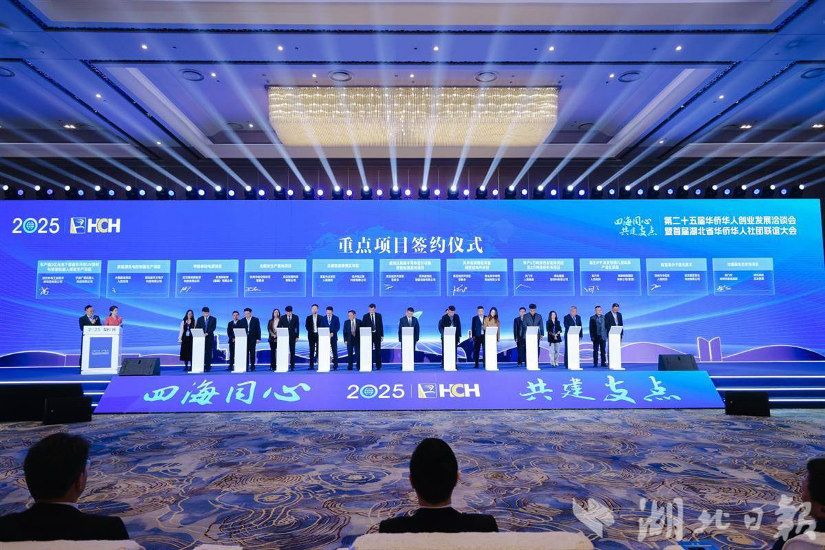 湖北日报讯(记者龚雪、沈早慧、通讯员叶群)中国梦,荆楚情,支点潮。11月25日上午,第二十五届华侨华人创业发展洽谈会暨首届湖北省华侨华人社团联谊大会在武汉光谷科技会展中心开幕,来自全球50多个国家和地区的500余名嘉宾共赴“侨海之约”,现场签约82亿元,10个海外高层次人才项目落地,助力湖北加快建成支点。