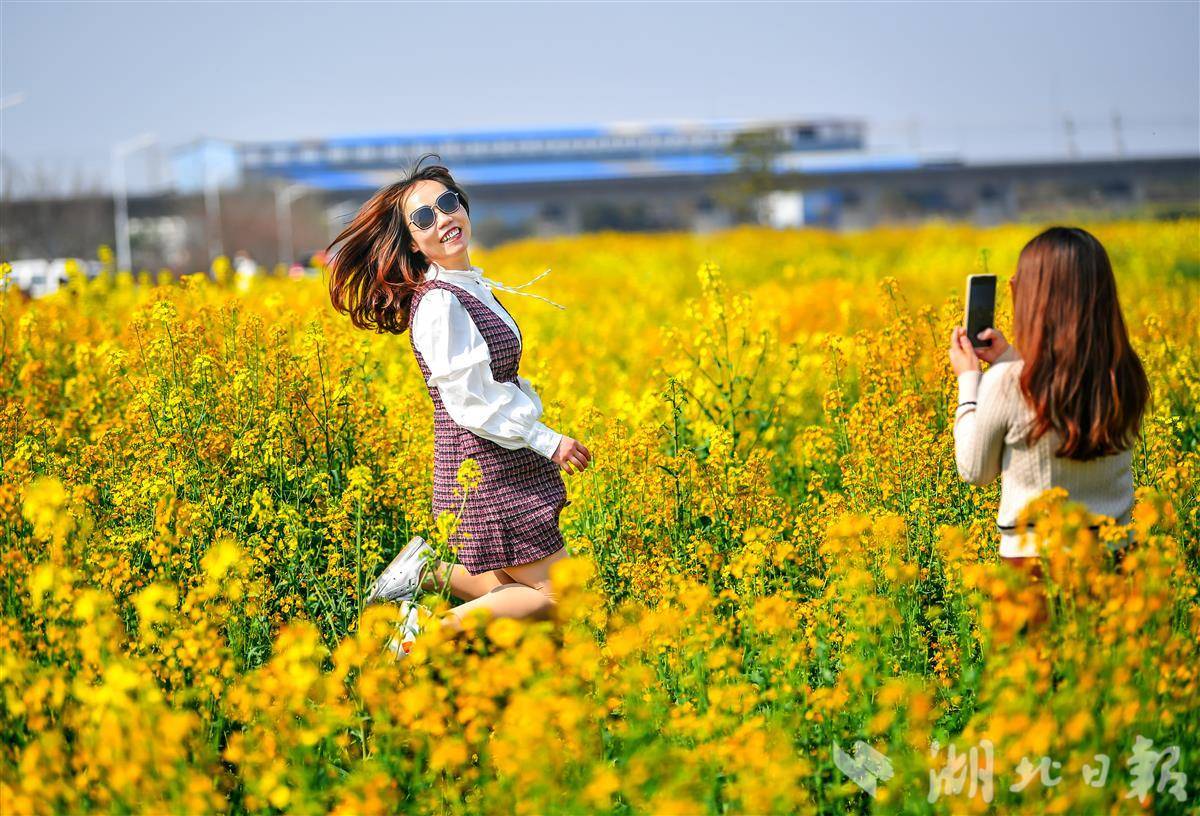 春暖花开,武汉市江夏区五里界街七彩油菜花竞相绽放。(通讯员 熊利兵 摄)