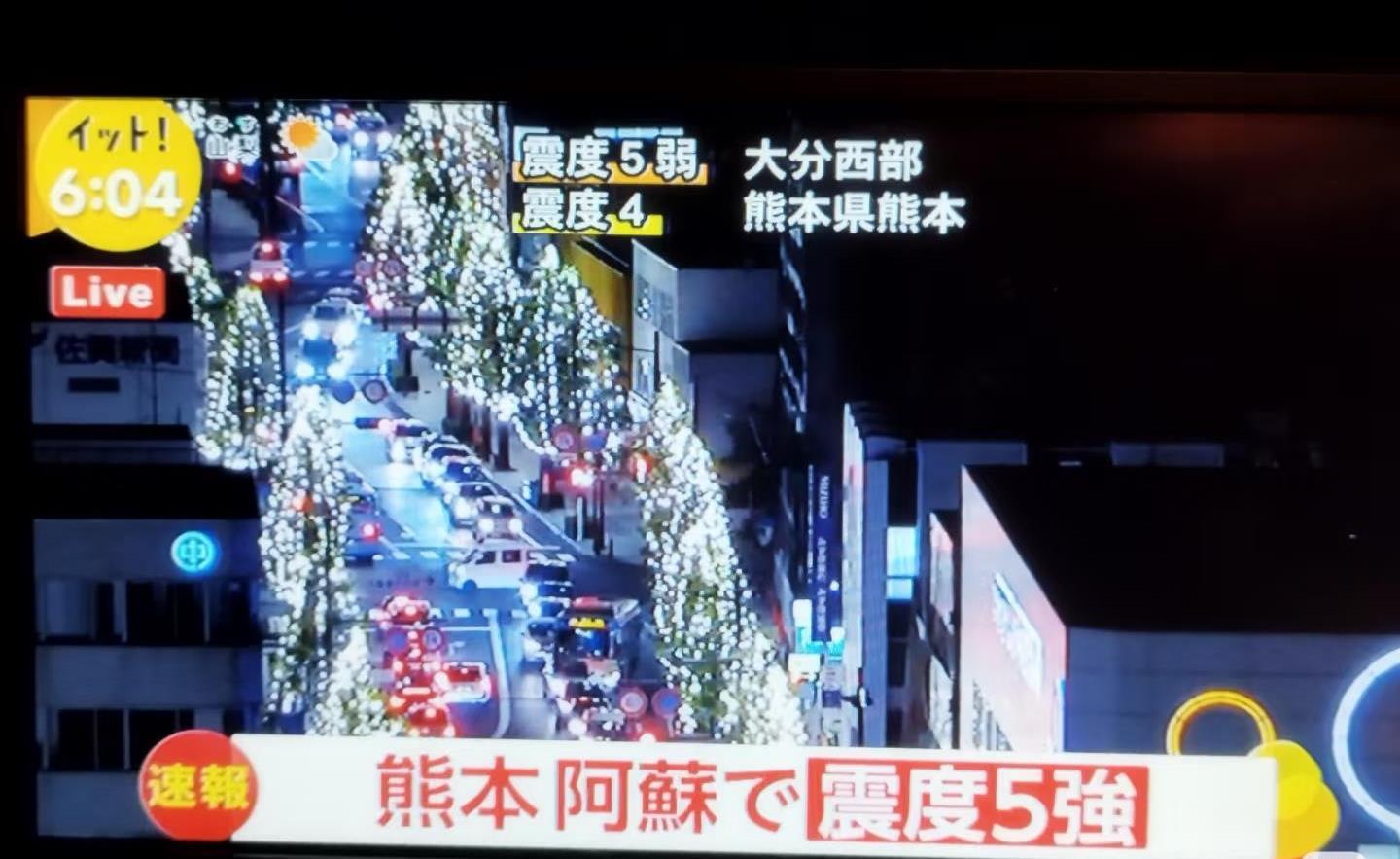 另一名网友告诉极目新闻记者,她在福冈坐车时也收到了地震速报,但由于车辆一直晃动,因此没感觉到地震,回家打开电视也看到了日本电视台关于地震的报道,显示地震发生在熊本县。