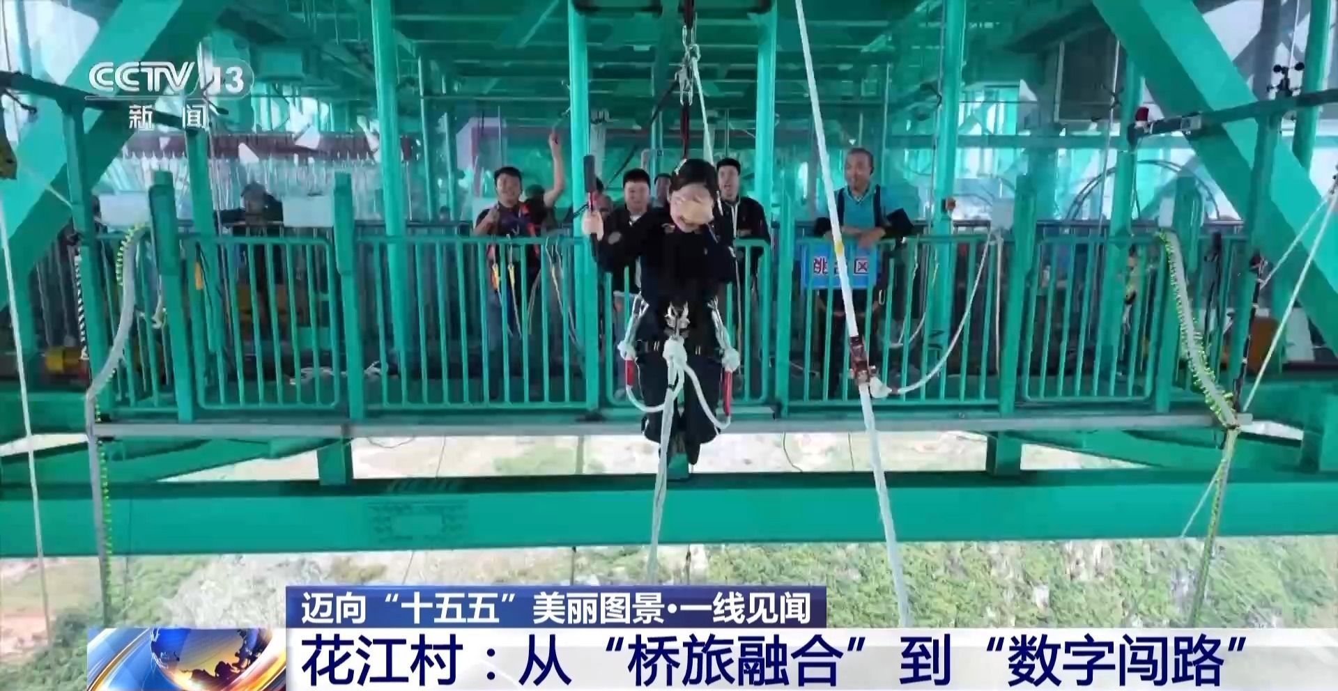 总台央视记者蒋树林介绍,花江村是传统的村落,因这座大桥的建成,村里增添了不少现代化设施,农家乐也通了5G。记者在沿途遇到了许多游客,他们一边拍照打卡,一边通过手机分享所见所得。
