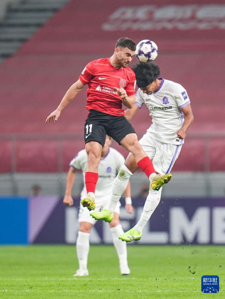 11月25日,成都蓉城队球员古尔芬克尔(左)在比赛中争顶头球。