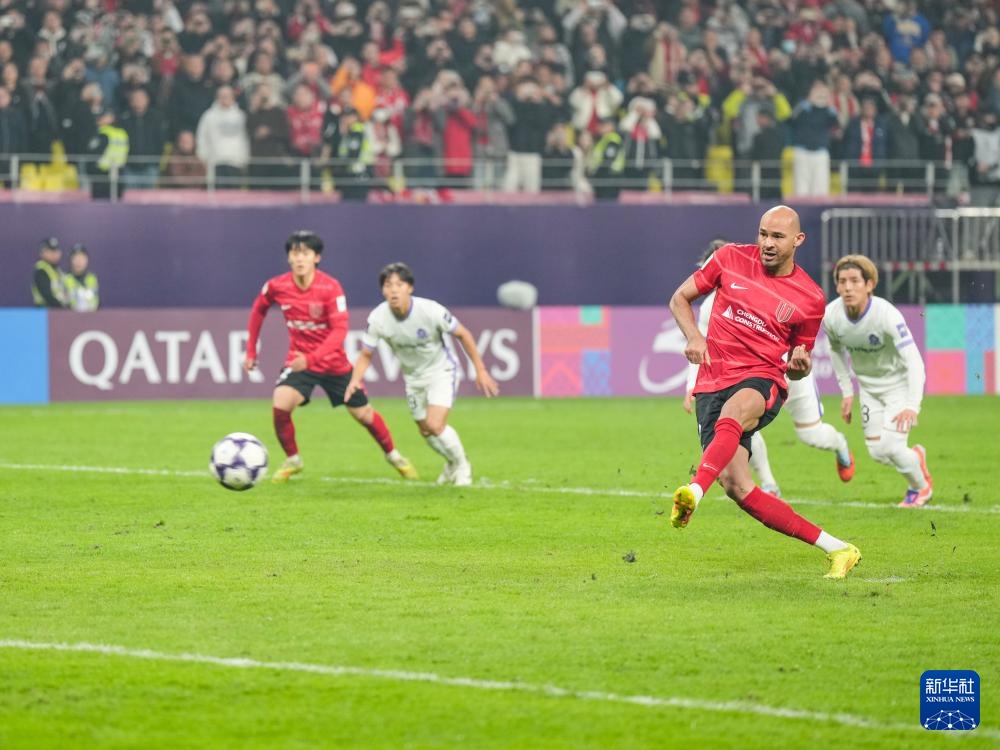 11月25日,成都蓉城队球员费利佩(前)主罚点球得分。