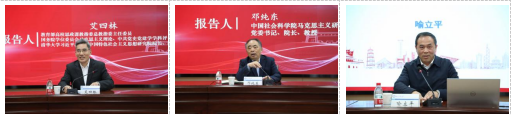 主旨报告环节,第一阶段由湖北工业大学马克思主义学院院长丁银河教授主持。教育部高校思政课教指委总教指委主任委员、国务院学位委员会马克思主义理论、中共党史党建学学科评议组成员兼秘书长、清华大学习近平新时代中国特色社会主义思想研究院院长、教授艾四林,中国社会科学院马克思主义研究院原党委书记、院长、教授邓纯东,湖北省人大常委会委员、省教科文卫委员会副主任喻立平分别以“以马克思主义引领中国哲学社会科学自主知识体系构建”“对‘十五五’时期高质量发展五大战略性任务的理解”“高校马院如何为‘营造良好文化生态’发挥重要作用”为题作报告。