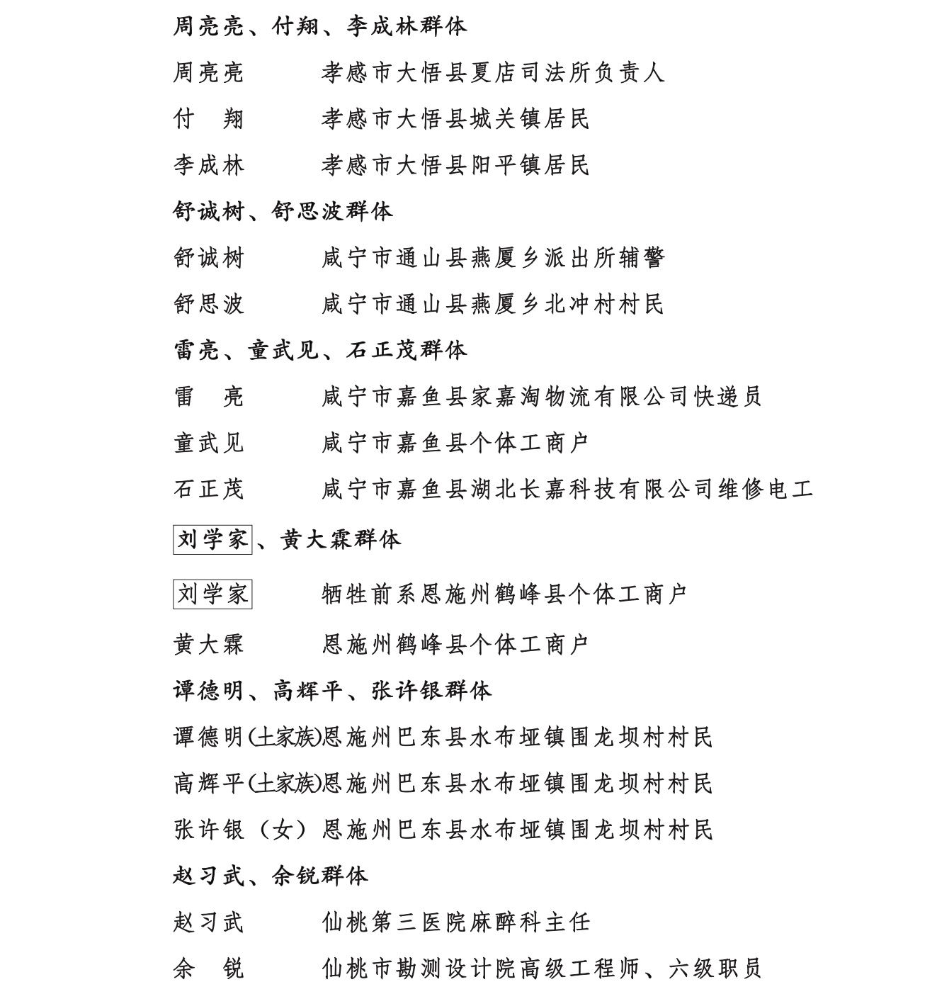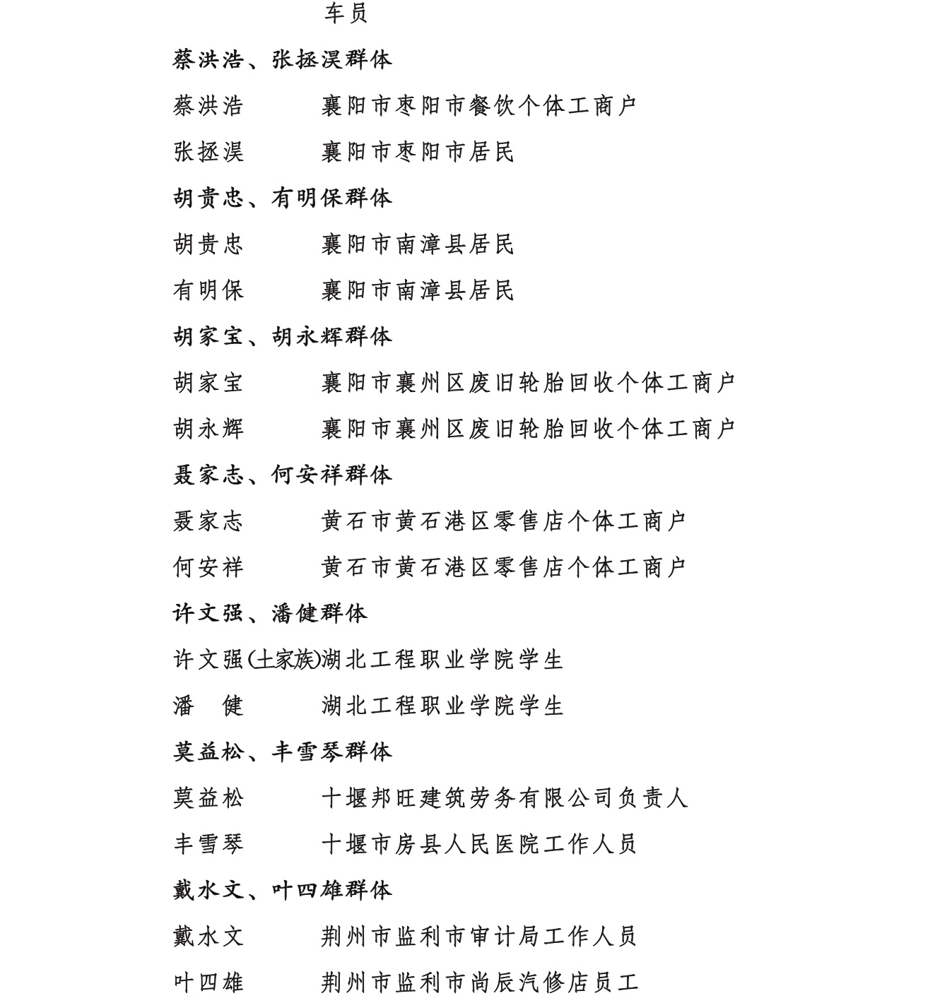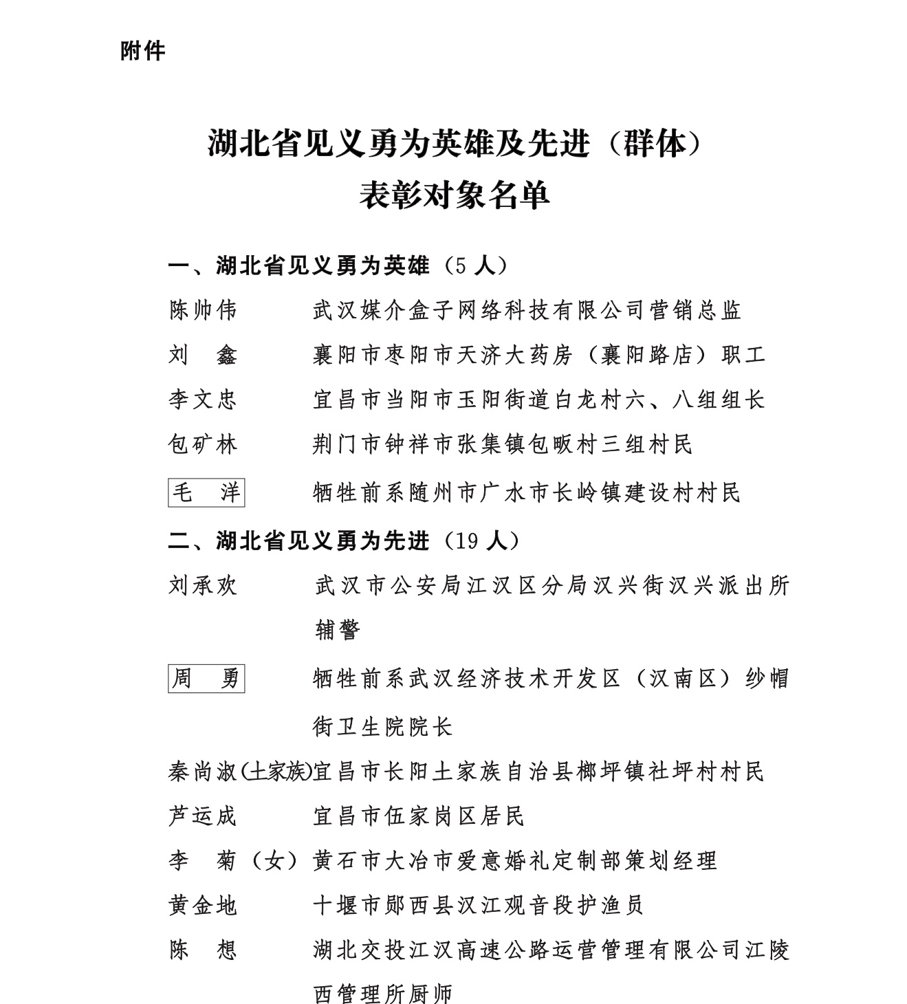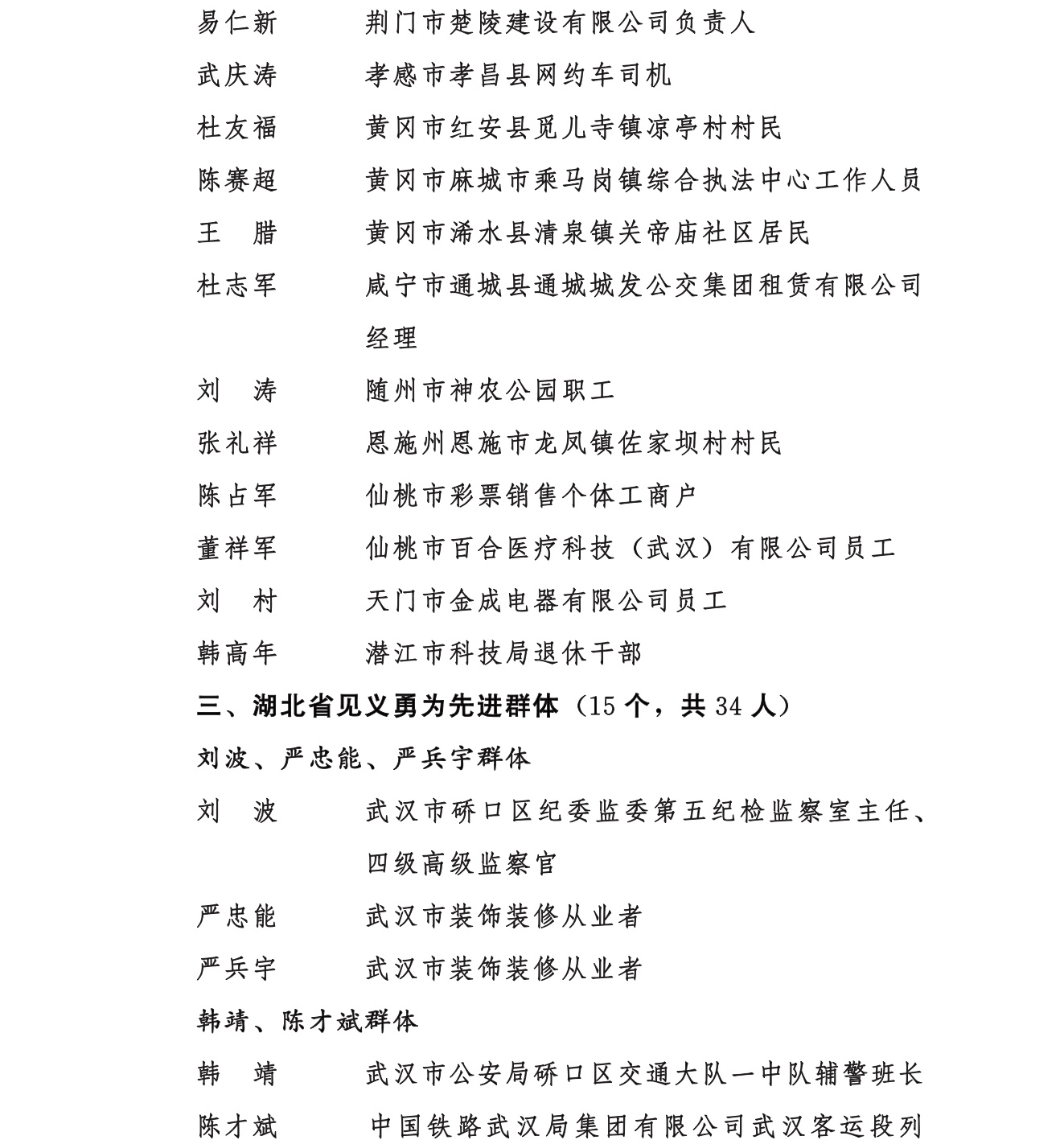 附:湖北省见义勇为英雄及先进(群体)表彰对象名单