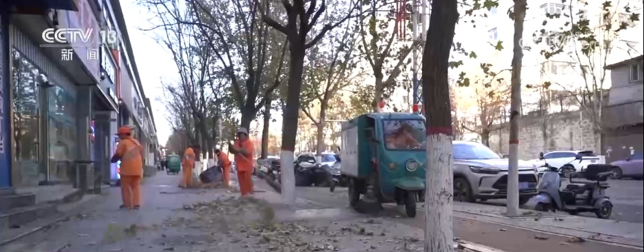 24日、25日,太原、阳泉等地出现7级以上西北风,并伴有扬沙或浮尘,局地最低气温降至-10℃。在阳泉市高新区,大风吹得树枝乱摆,大量树叶不断掉落。24日,阳泉市气象台发布大风和沙尘双预警,当地环卫部门增派多台吹吸一体机和新型吸叶机,采用“机械+人工”协同作业模式,加大落叶清扫力度。