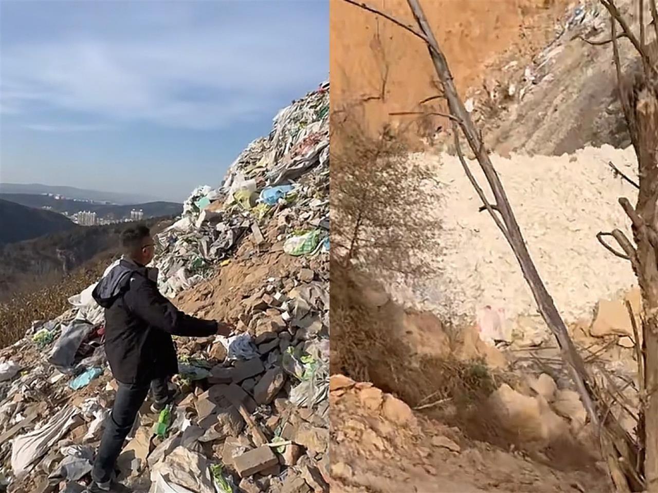 该博主在现场看到,在一处深沟内,倾倒的黑、灰、白色固体废物已经凝固,比较硬,没什么异味。另外,玉米地旁堆积的主要是装修垃圾,“水泥、腻子粉外包装和涂料桶等,堆得像山一样,部分玉米地被覆盖了。”视频显示,现场还有大量的塑料薄膜、砖块和一些生活垃圾。他表示,难以置信,距离市区这么近,竟有人敢把大量的垃圾倾倒在此处,处理难度比较大。他已对现场各类垃圾取样封存,计划找相关机构对固体废物进行检测,了解其成分和危害。同时,他已将上述情况反馈至吕梁市相关部门。