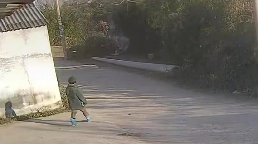 据孩子表伯孙先生介绍,11月20日孩子和奶奶到袁寨村扫墓,祭扫的对象是奶奶的父亲。下午四点左右扫完墓,奶奶带着孩子来到孙先生家里,和他爸爸说几句话。由于孩子有智力障碍,多次发生走丢的情况,奶奶用绳子把她的手和电动自行车绑在一起,然后进屋和娘家人说话。就在这几分钟里,孩子不见了,可能是自己解开或者挣脱了绳索,然后自行离开了。孙先生邻居家的监控视频显示,16时06分,监控提醒,有人从邻居家门口经过。画面中,小涵脚上穿着雨靴,身上穿着灰色的棉衣,从房屋的拐角处经过。