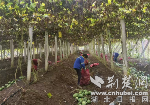 荆楚网(湖北日报网)讯(通讯员 黄志霞 李辰燃)初冬时节,瓜蒌飘香。近日,在京山市新市街道胜境村七组瓜蒌种植园,翠绿的瓜蒌藤蔓上挂满了沉甸甸的果实,村民们穿梭其间,采摘着成熟的果实,路边满载的货车正整装待发,处处洋溢着丰收的喜悦之情。